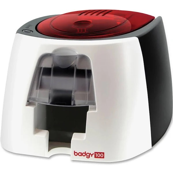The Badgy100 all-in-one solution lets you create and print your own personalized plastic cards and badges one at a time. The package includes a printer, a card designer, and a starter kit, including a ribbon and 50 blank cards, and a dedicated website for card template.